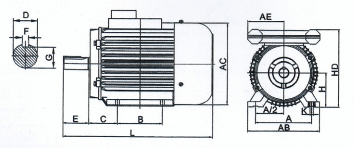 YL系列單相電機(jī)具有噪聲小,溫升低的特點(diǎn)防護(hù)等級(jí)IP54,F級(jí)絕緣B級(jí)溫升考核:安裝尺寸合IEC 標(biāo)準(zhǔn):
